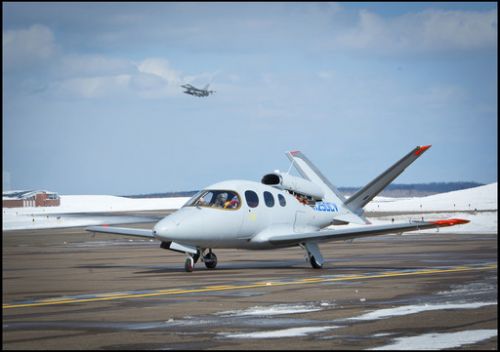 当地时间2014年3月24日在美国德鲁斯国际机场,“愿景”喷气机用于定型试验的首架机C0架机首飞成功。