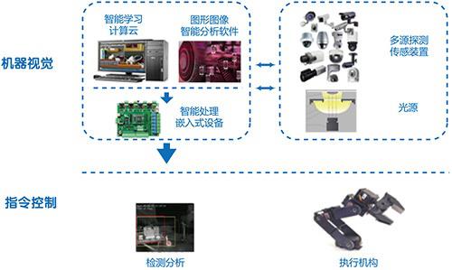 机器视觉智能系统以目标特性分析为基础,通过图形图像分析、人工智能与云计算技术相结合的手段,给机器增加一双智慧的“眼睛”,让机器具备视觉和大脑功能,能看、能检测、能判断、能自主学习,对客观世界的三维场景和目标特性进行智能感知、识别和理解。